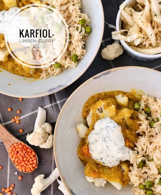 - Mittagessen: Karfiol-Linsen-Curry mit Chinakohlsalat