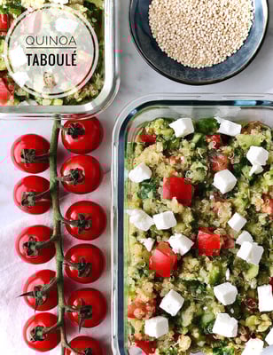 - Abendessen: Gemüsebulgur (Quinoa-Taboulè) - du kannst bei diesem Rezept als Kohlenhydratanteil Bulgur, Cous Cous oder auch Quinoa verwenden, je nachdem was du zuhause hast. Die Mengen bleiben gleich, nur die Zubereitungszeit variiert stark (5 Min Cous Cous vs. 20 Min Quinoa).