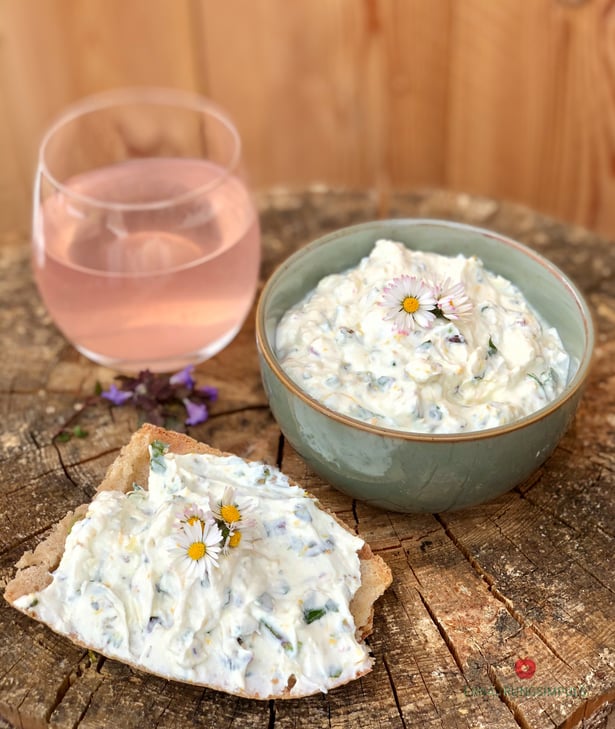 Knoblauchzehe zerdrücken, Kräuter fein hacken und alles kräftig miteinander vermengen. Das war`s. Achtung durch den Löwenzahn und auch den Günsel ist der Topfen leicht bitter. Bei mir mit Absicht: Wenn ihr es weniger bitter mögt dann keine Löwenzahnblätter verwenden und auch den Günsel weglassen.