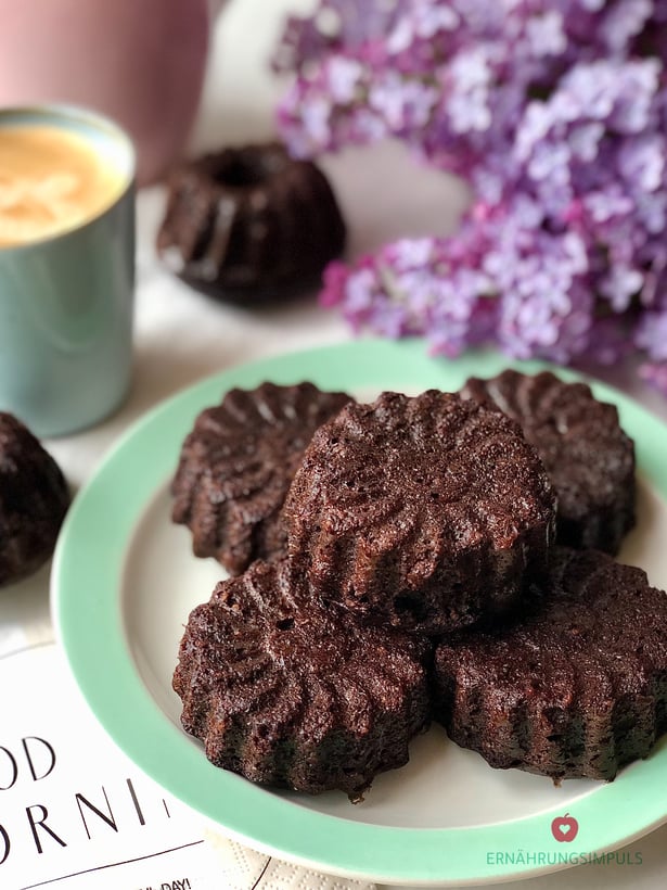 - Den Teig in eingefettete Silikonförmchen füllen und etwa 40 Min bei 180°C backen.