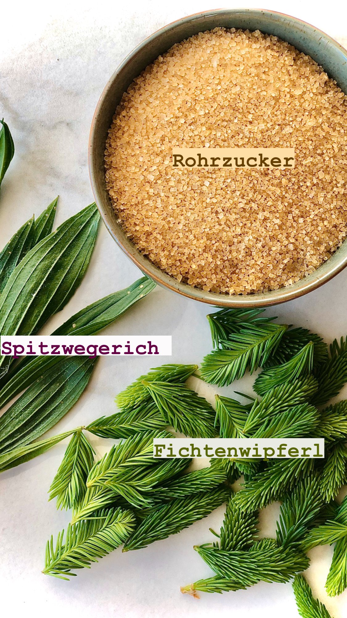 Ich mische zu meinem Wipfelrsirup auch noch eine kleine Handvoll Spitzwegerich. Auch der Spitzwegerich ist eine wunderbare Heilpflanze bei Husten. Es löst den Bronchialschleim und lindert generell Beschwerden im Hals-und Rachenraum. Die beiden in Kombination sind daher ein unschlagbares Duo in der Hustenzeit. Falls ihr keinen Spitzwegerich findet ist es okay. Er ist nur optional und kein Muss.