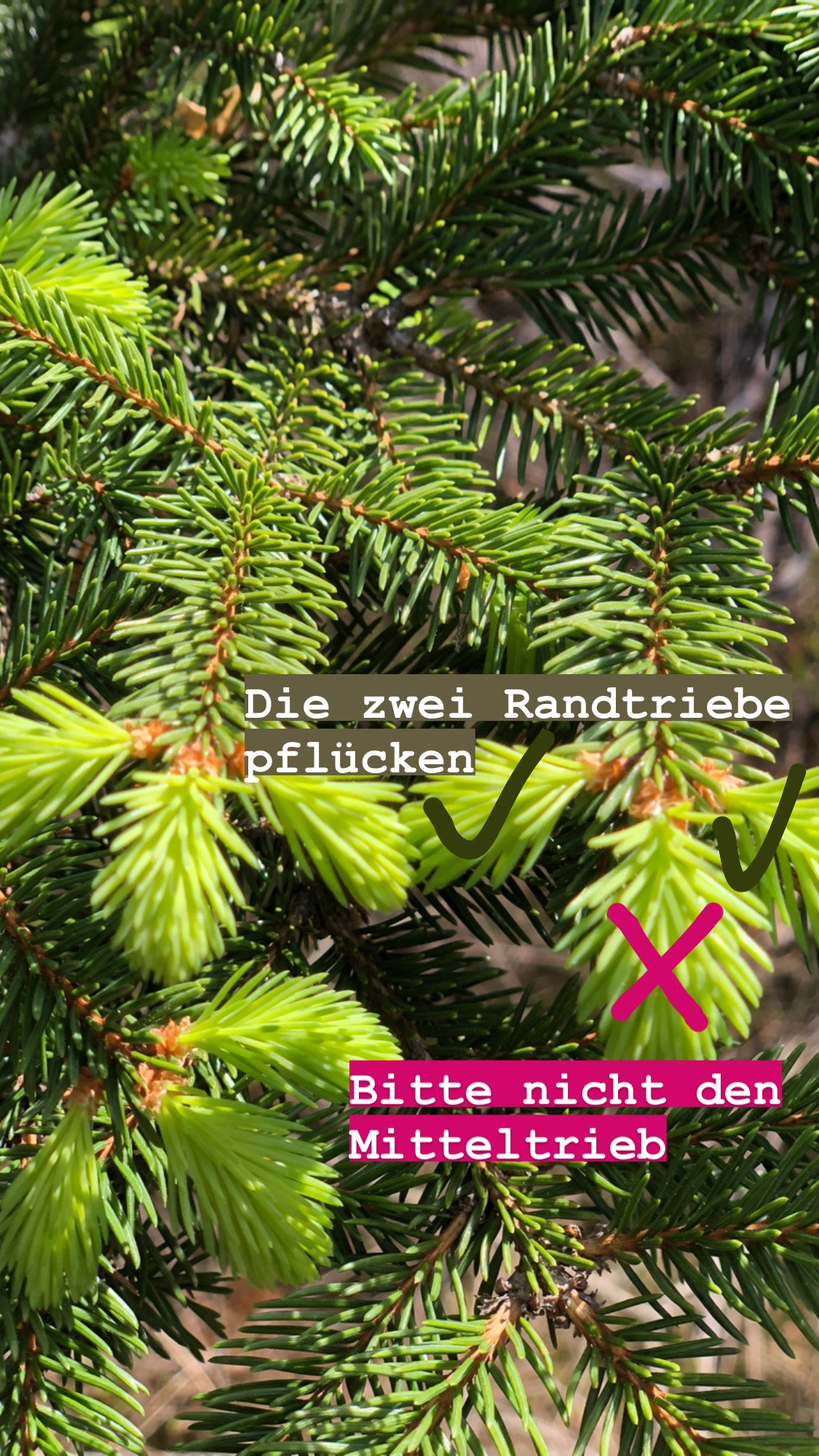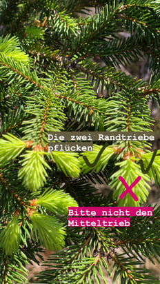 Man kann sowohl von Fichten als auch von Tannen pflücken. Ihr könnt dabei auch gerne mischen.