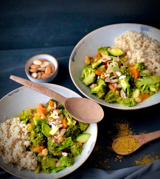 - Beilage: Naturreis oder Quinoa oder Couscous oder Hirse