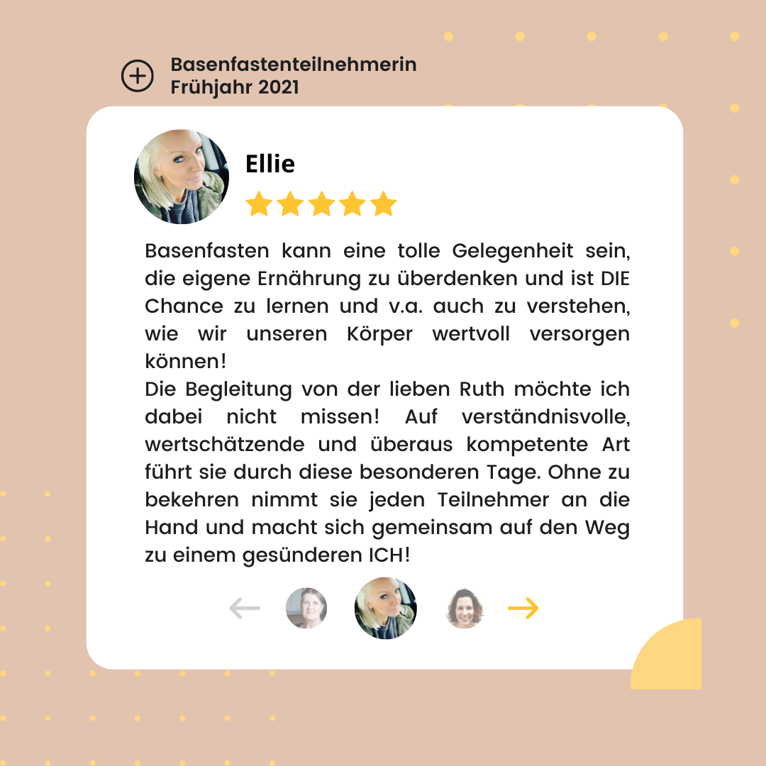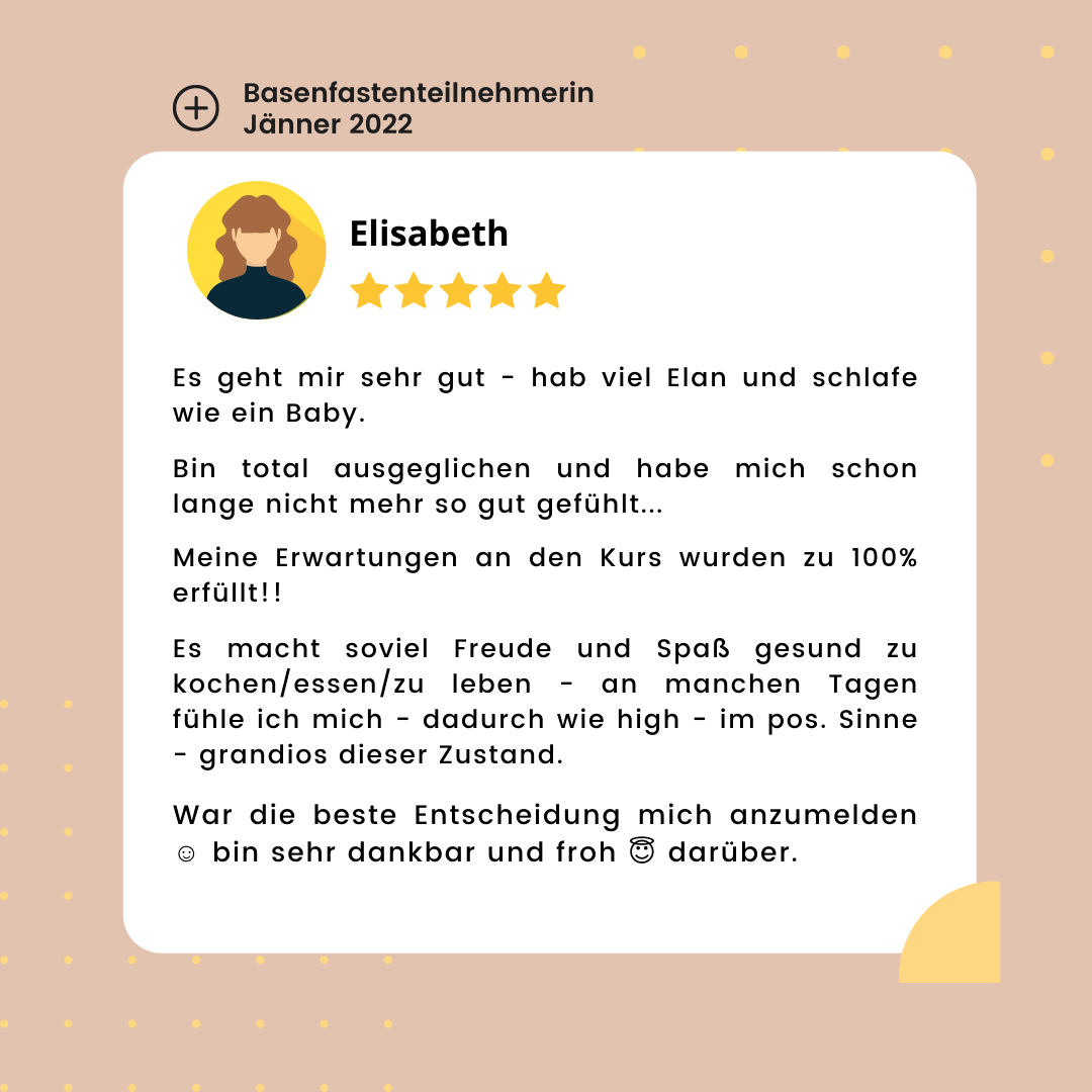 Du wirst während unserer gemeinsamen Basenfastenzeit mit ziemlicher Sicherheit einige Kilos verlieren, du wirst dich und die Signale deines Körpers (Hunger, Sättigung) besser kennen lernen, du wirst merken wie gut pflanzenbetonte Kost tut und wie gut diese schmecken kann. Du wirst eine veränderte Schlafqualität und einen verbesserten Energielevel feststellen können! Ich nehme dich an der Hand und führe dich durch unsere 2-wöchige Basenkur!